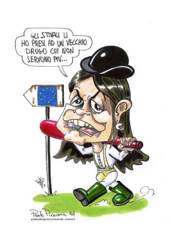 S.e. Mons. Marcello Semeraro, attualmente impegnato nel conclave, in una vignetta che gli donai del 2004 quando era Vescovo di Oria, in occasione di uno spettacolo di Gioele Dix a Manduria.